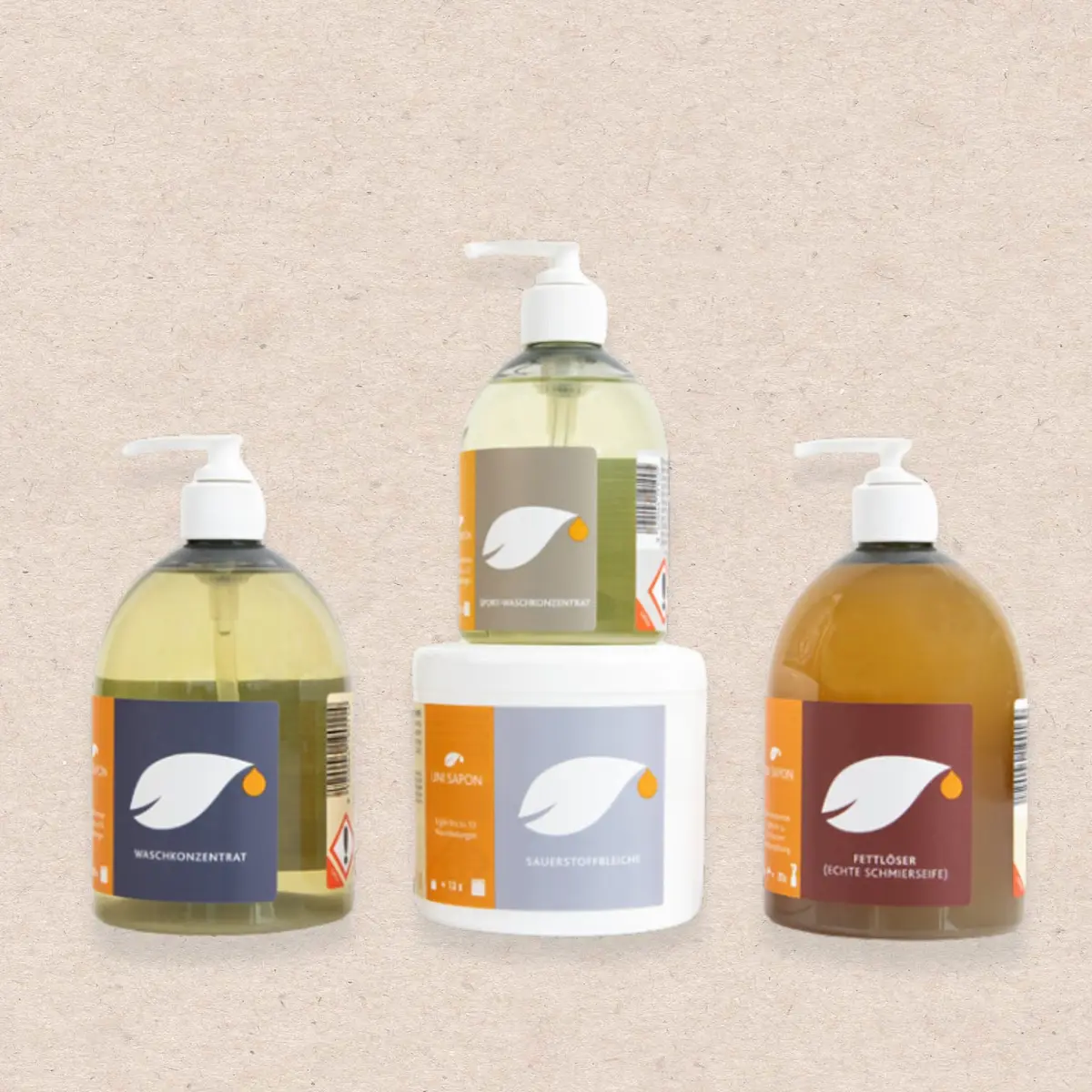 Unser Wäscheprofi Set vereint alles, was du für strahlend saubere Wäsche brauchst – ganz ohne aggressive Chemie. Die vier aufeinander abgestimmten Produkte auf pflanzlicher Basis entfernen selbst hartnäckige Verschmutzungen zuverlässig und schonen dabei Textilien, Haut und Umwelt.